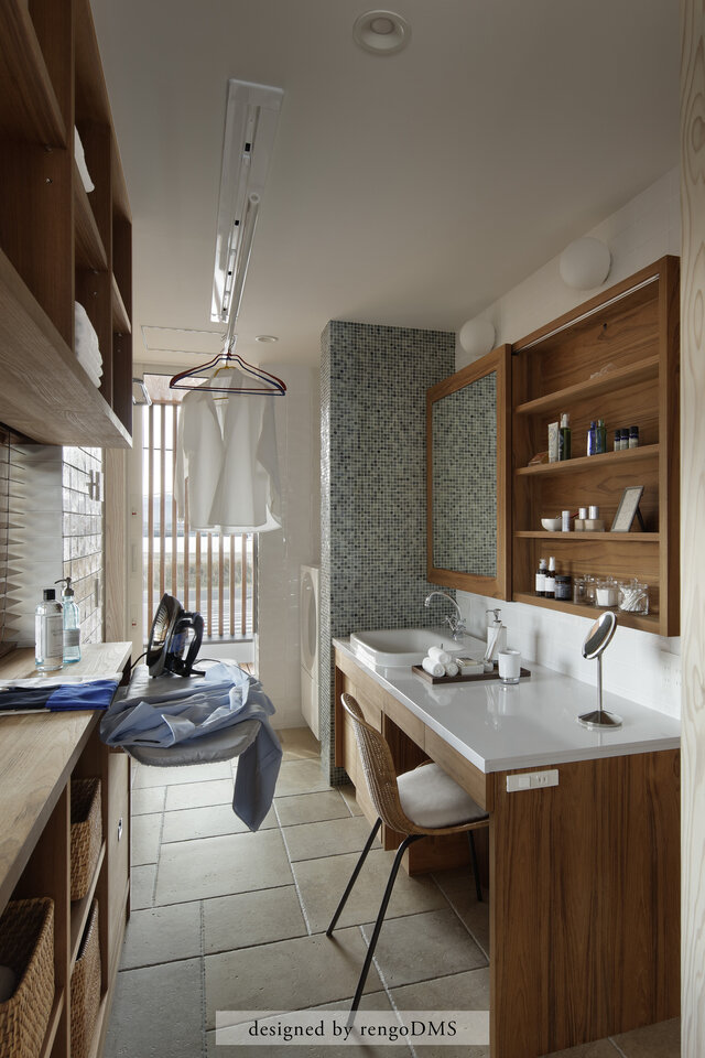 amaneコンセプトハウスの家事室は洗面やお風呂と一体化。