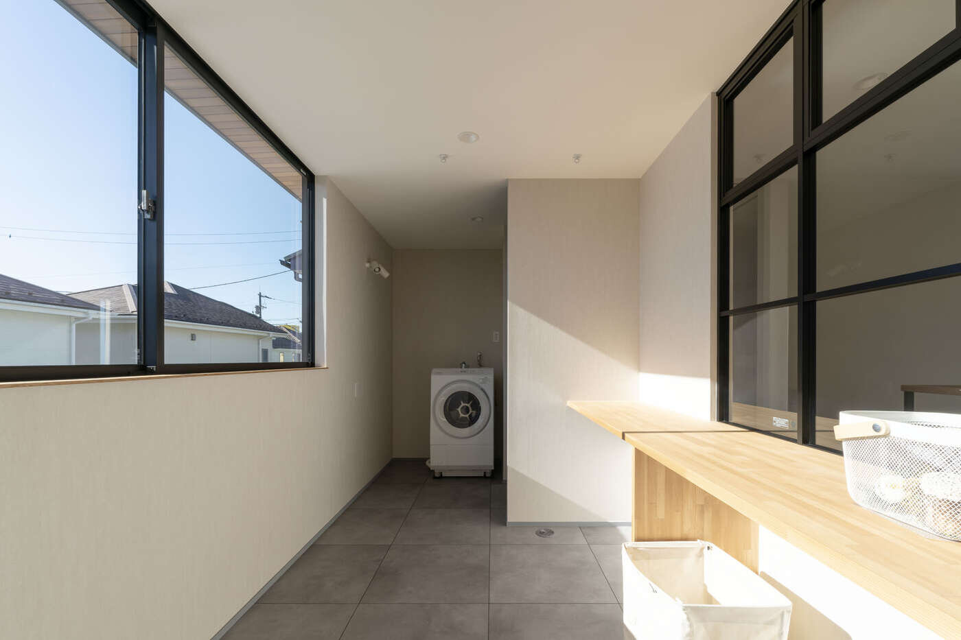 ランドリースペースは南向きで、陽光がたっぷりと差し込み、